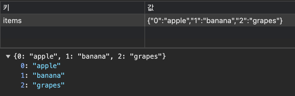 이 때문에 JSON.stringify를 사용해 객체를 string으로 변환해 스토리지에 넣고,