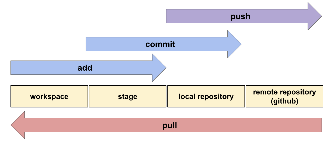 git은 총 4가지 영역(workspace, stage, local repository, remote repository)으로 구분되며,